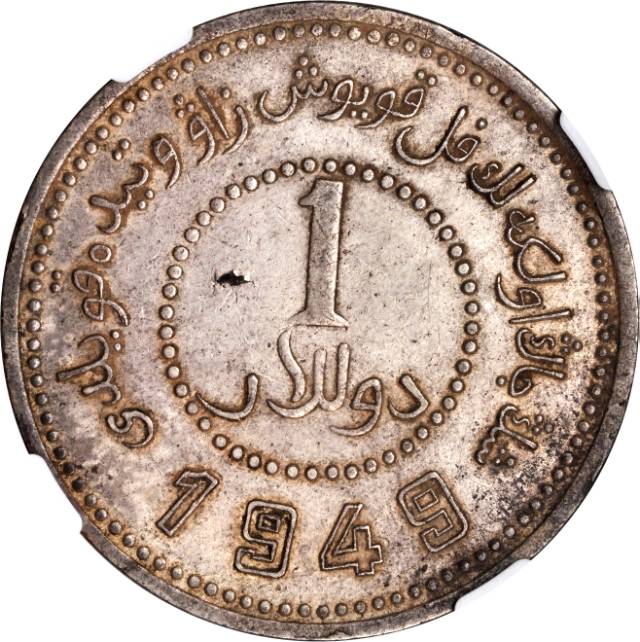1949民国新疆省造壹圆银币,PCGS 40800990 AU50 ,3.9*0.22cm,25.3g