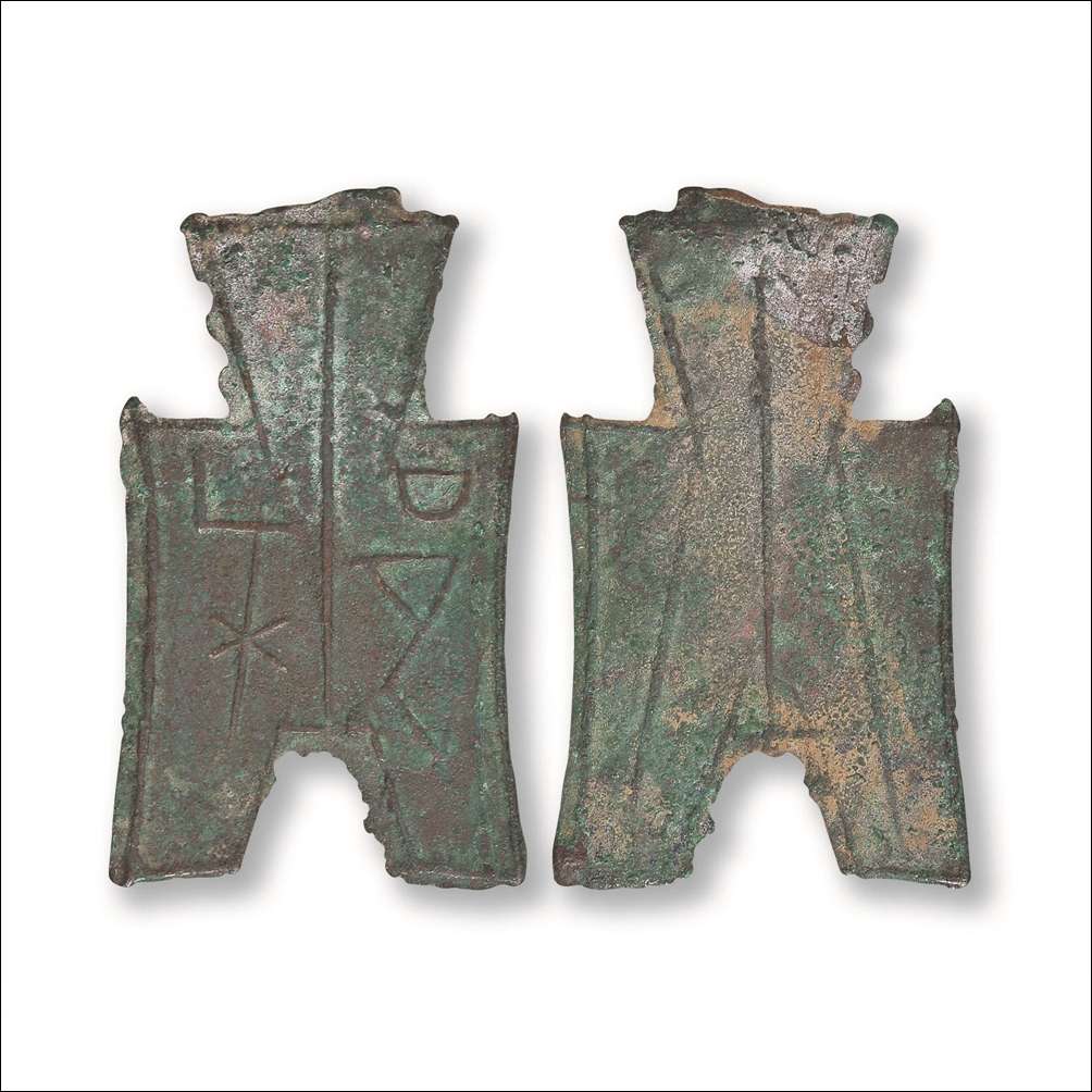 “屯留”方足布一枚,高:47.6mm,文字清晰,极美品