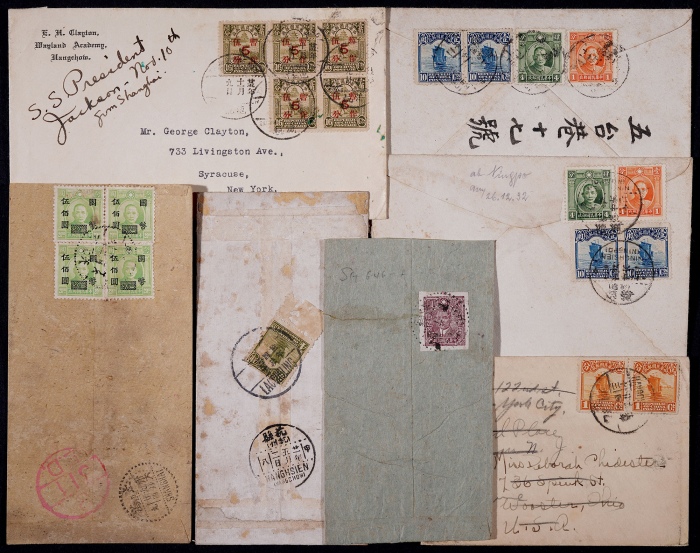 1931-47年浙江地方实寄封一组7件,有国际平信邮资25分封3件、2分邮资印刷品封一件,国内平信邮资4分、2元、2000元封各一件,贴票包括北京二版帆船农获图16分加盖改值“暂作5分”五连票、伦敦版孙像(双圈)1分、4分等,宁波、杭州等地发寄,请预览 ...