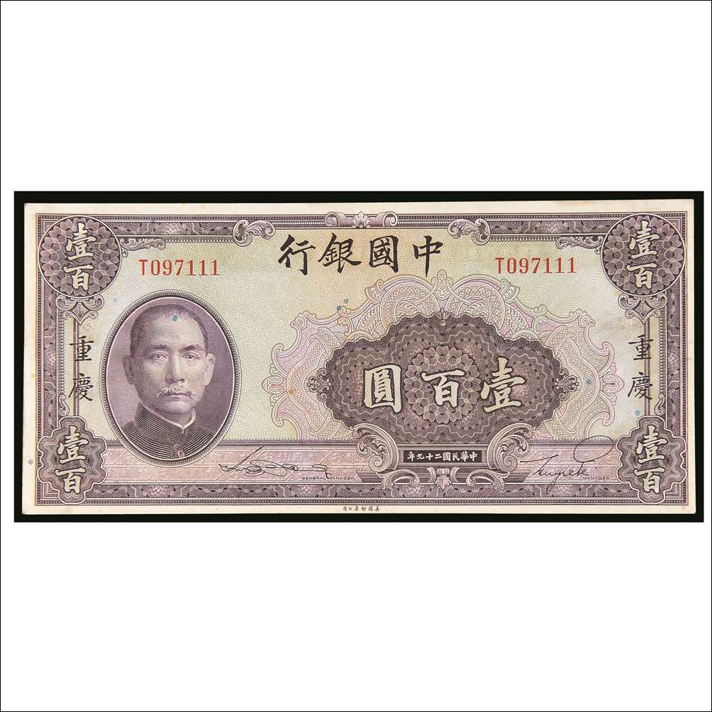 关于民国二十九年(1940年)中国银行重庆壹百圆的评论