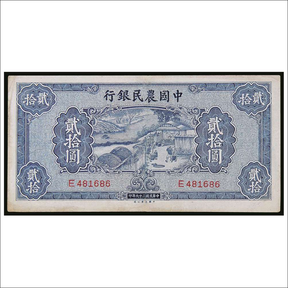 关于民国二十九年(1940年)中国农民银行贰拾圆的评论