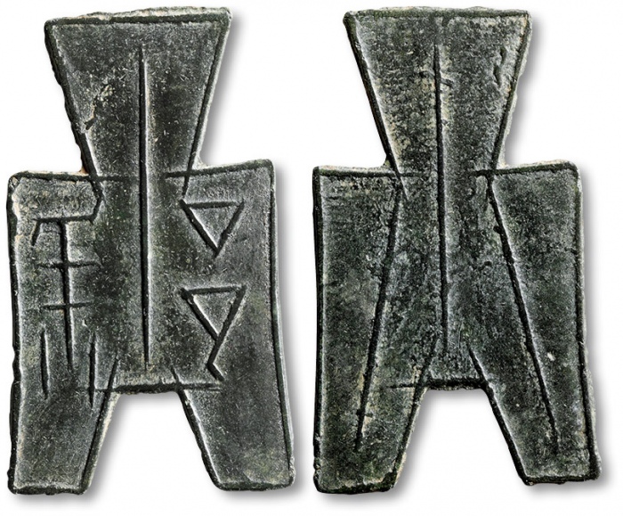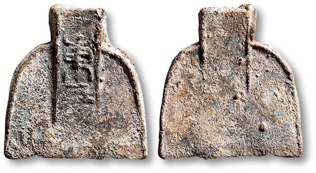 “唐是”方足布一枚,高:49.3mm,文字较清晰,极美品
