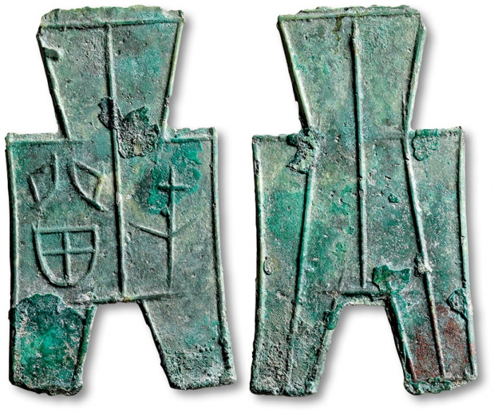 赵 方足布“戈邑”背“一半”一枚,高:51,9mm,公博美85