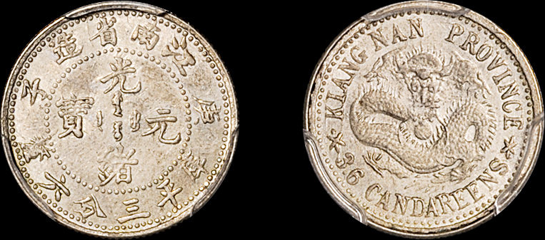 1897清江南省造光绪元宝无纪年库平三分六厘银币圈版,PCGS 87511834 UNC94 ,1.43*0.09cm,1.4g