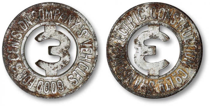 清民上海电气建设有限公司(对外称呼为“英商上海电车公司”)电车代用币3分一枚,制作精美,包浆厚重,状态自然,极美品