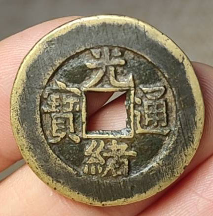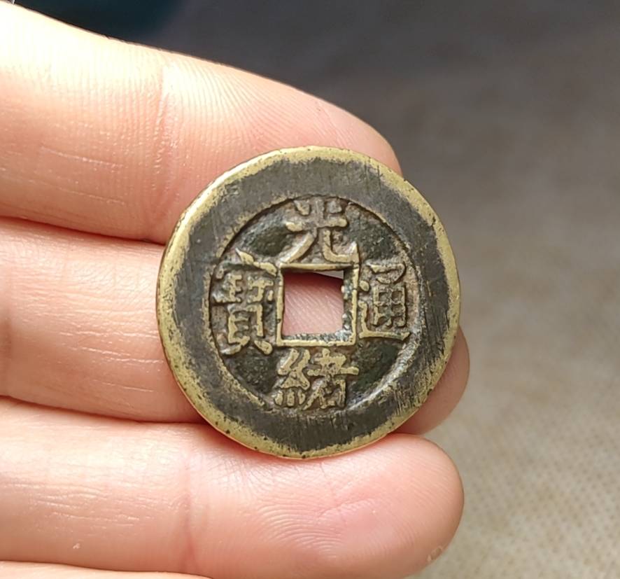 光绪通宝宫钱,十分难得的光绪通宝宫钱,包浆温润,十分厚实,一眼开门,实物非常震撼,直径26mm*1.5mm。