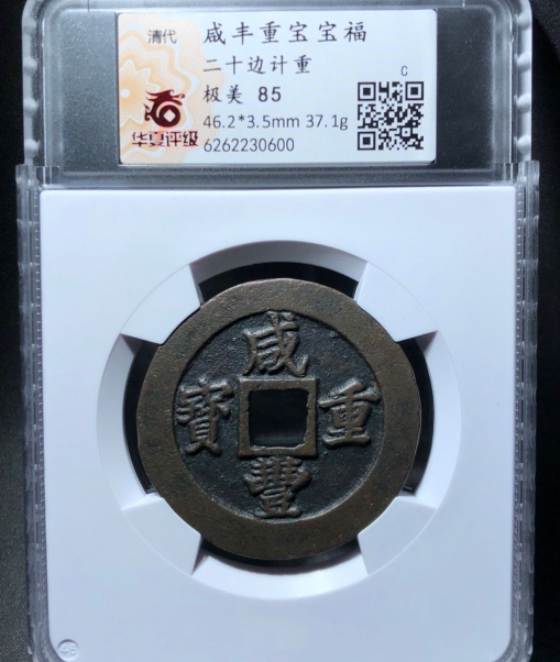 咸丰重宝宝福二十记重,品相好,个人送评,低评,华夏开放盒,盒子币不退不换