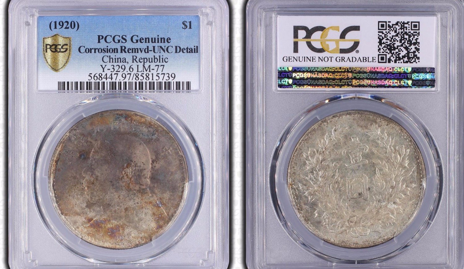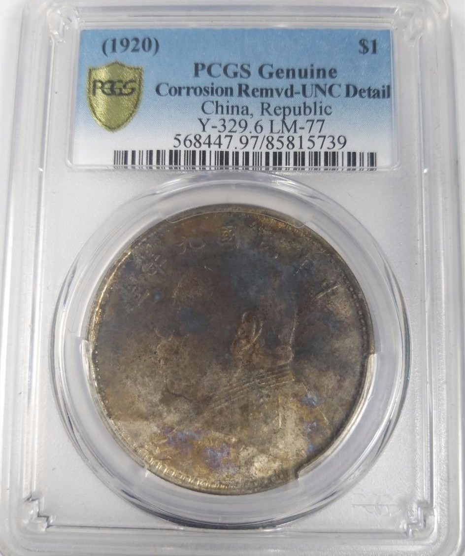 PCGS 97 UNC大头九年五彩原光袁大头,未使用品。
