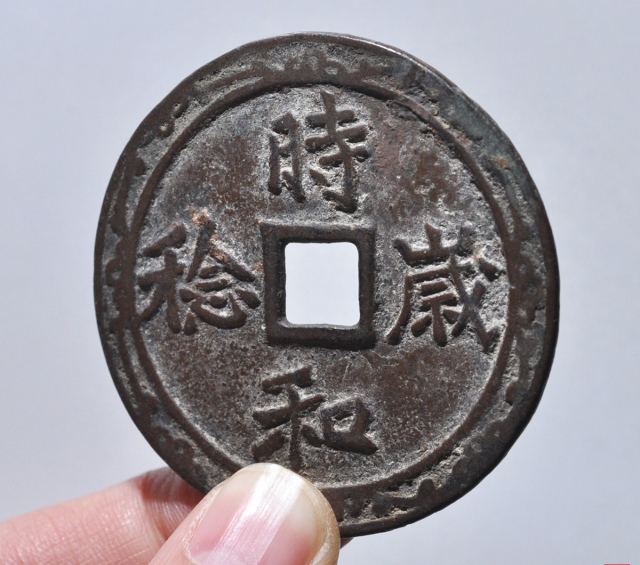 时和岁稔背龙凤花钱