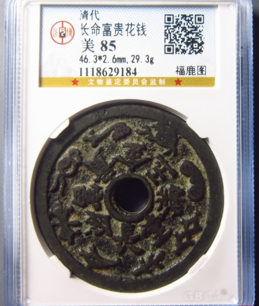 长命富贵背福鹿花钱评级币