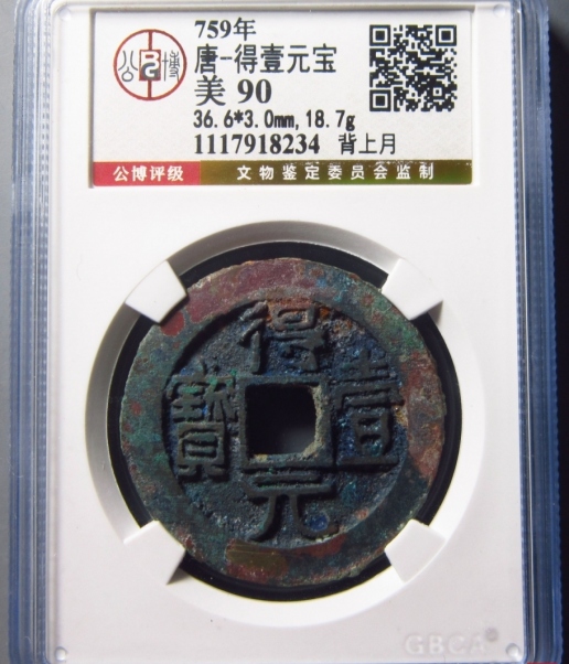 得壹元宝背上月评级币