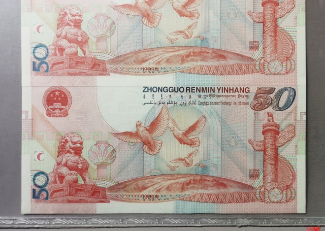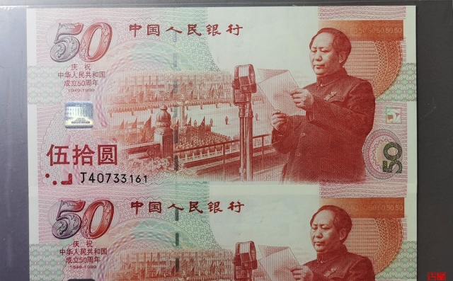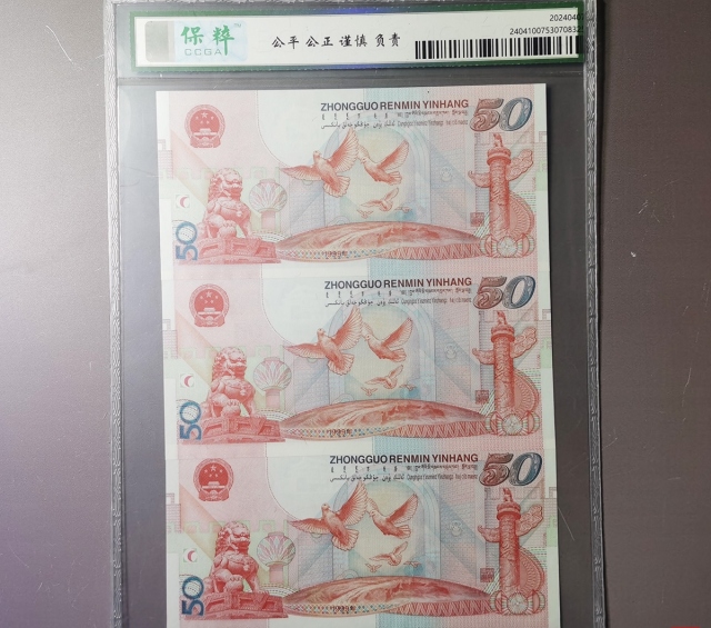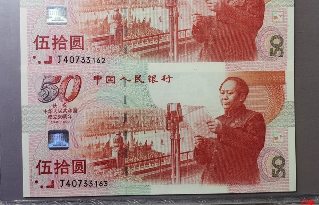 W建国五十周年纪念钞三连号评级币