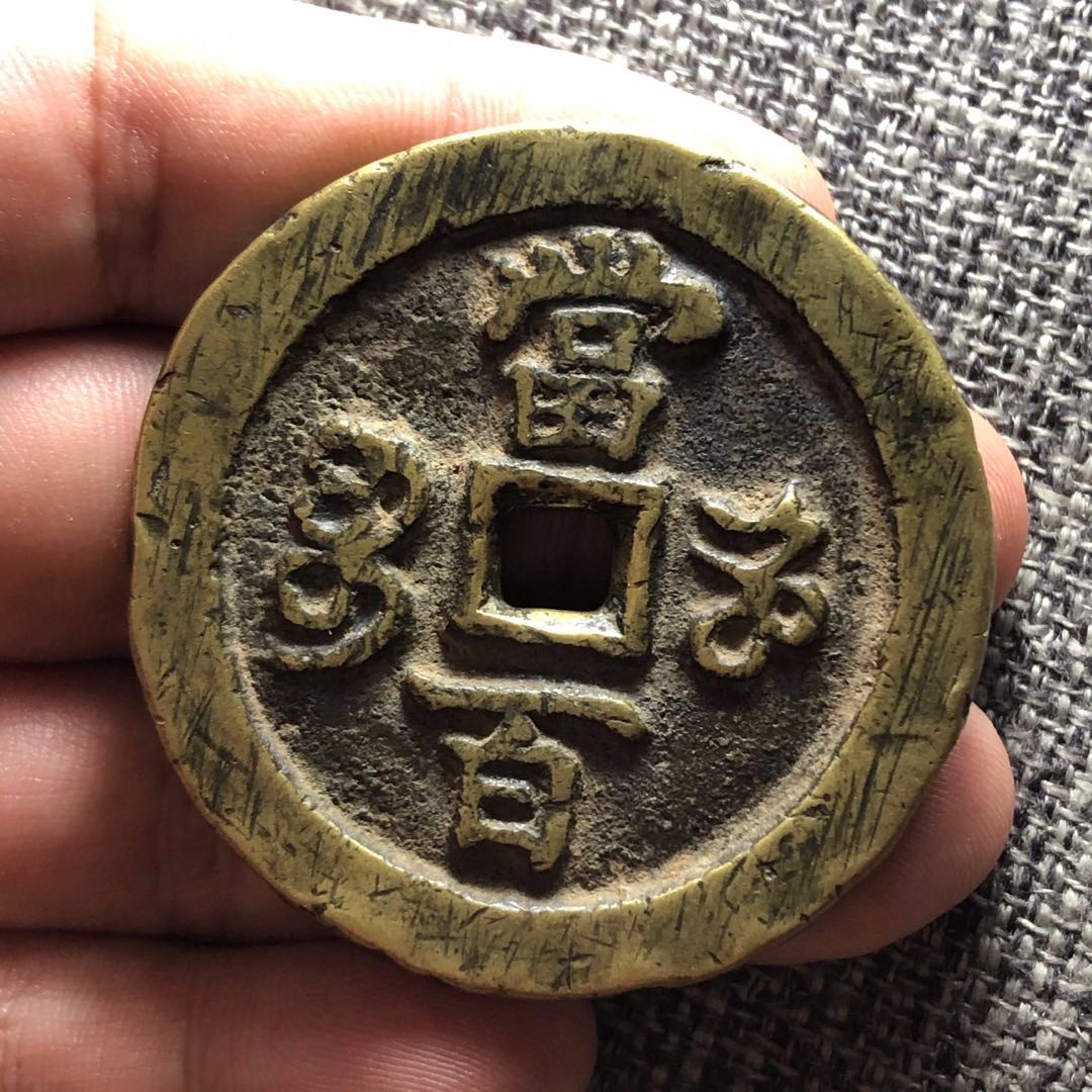 咸丰元宝宝河当百大异书 ,文字张狂有力,同版式所见寥寥无几。
