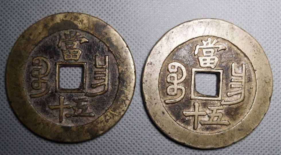 传世黄亮咸丰重宝昌五十一对,52.1x3.2、51.8x3mm。