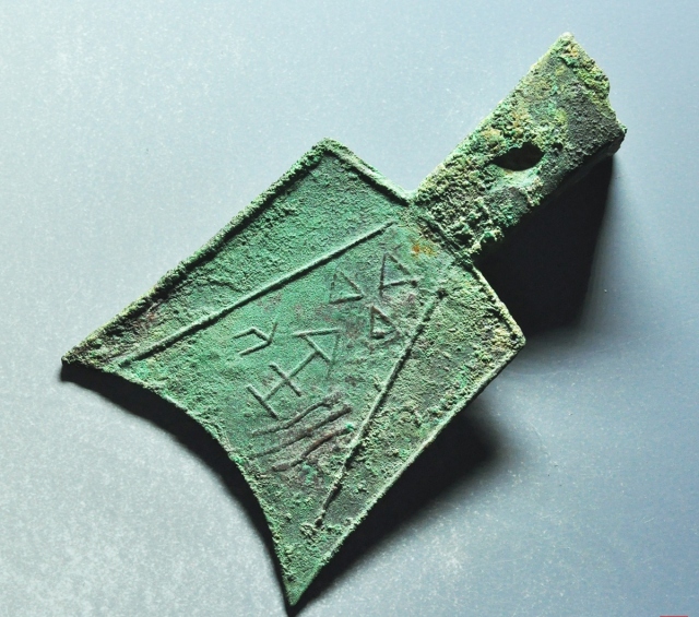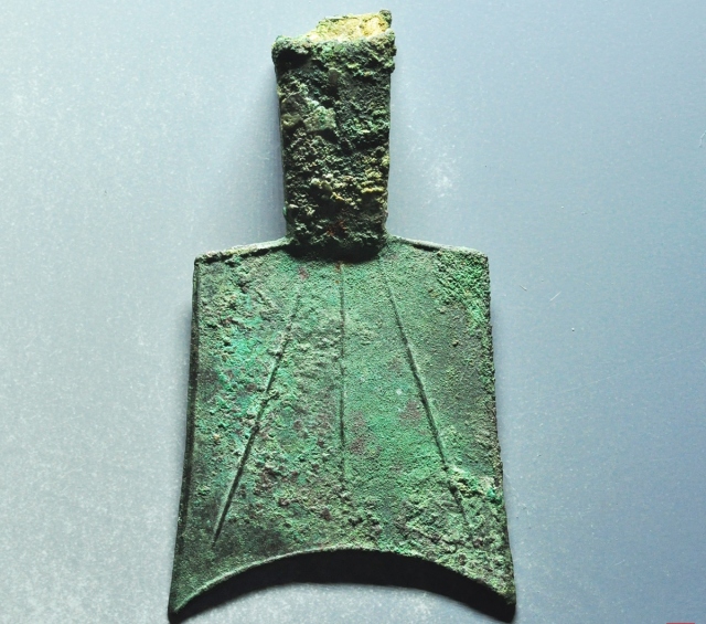 斜肩空首布三川釿