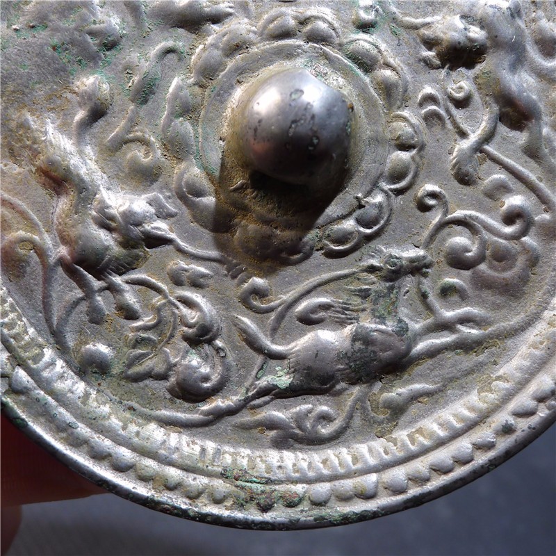 唐代四骏铜镜,最大直径:90.7mm,厚:5.4mm。