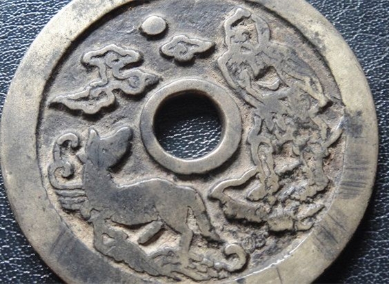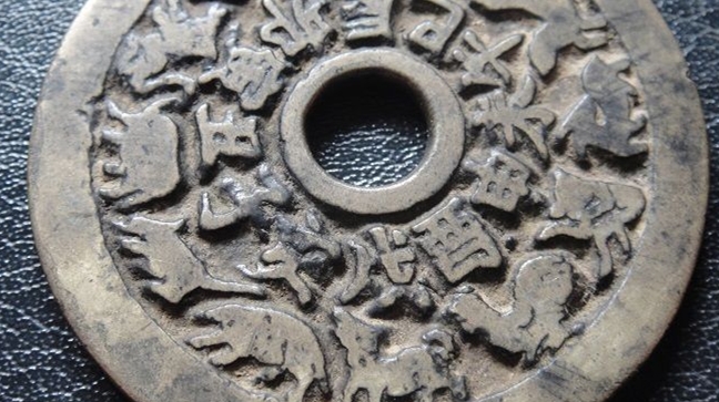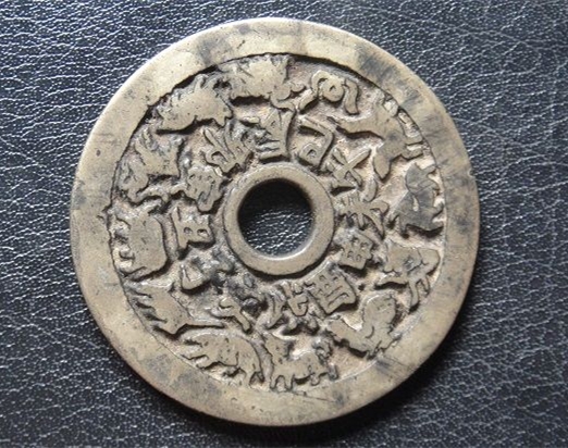黄亮大开门生肖花钱,直径45.8*厚2.2,品如图,无跷裂补。