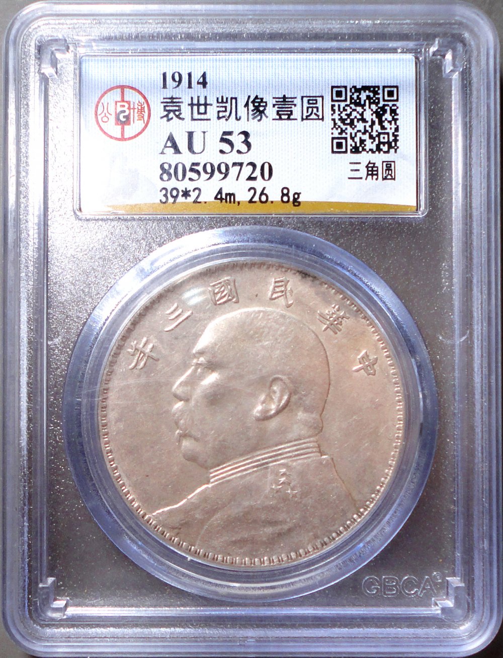 公博AU53 民国三年袁世凯壹圆三角元