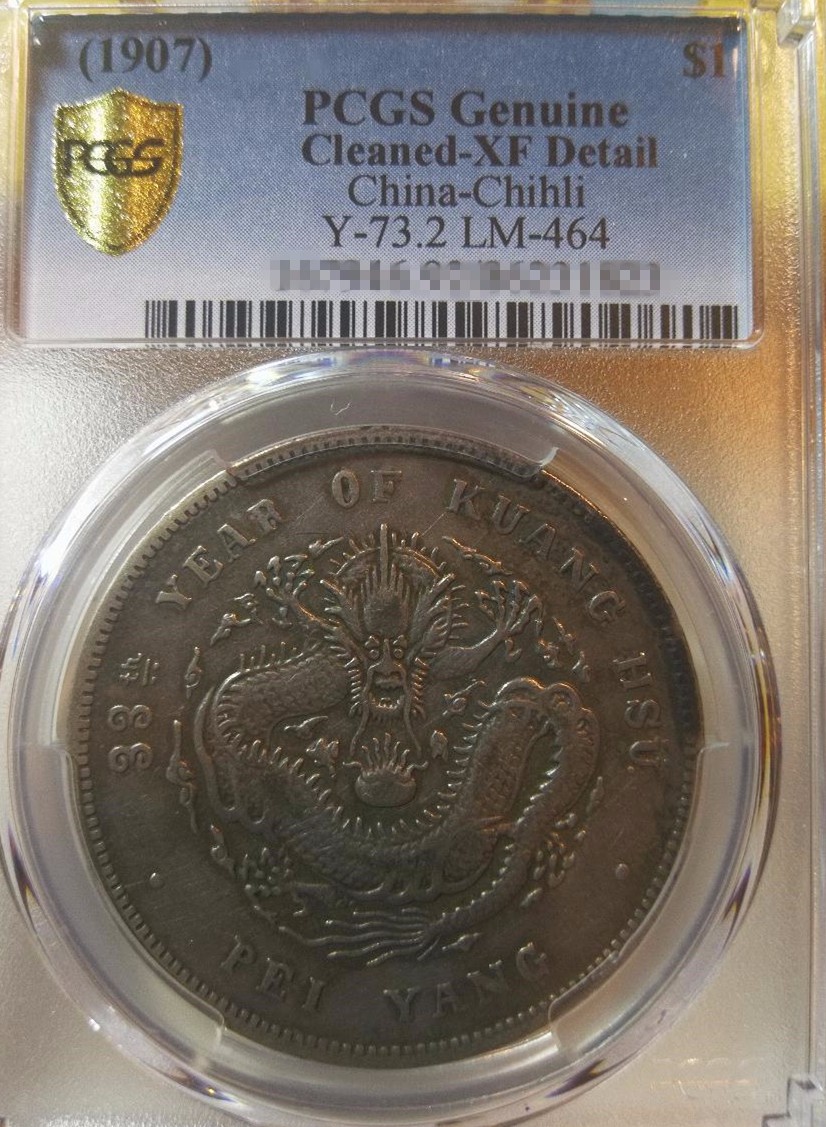 PCGS XF北洋33年光绪元宝7.2,品相如图!